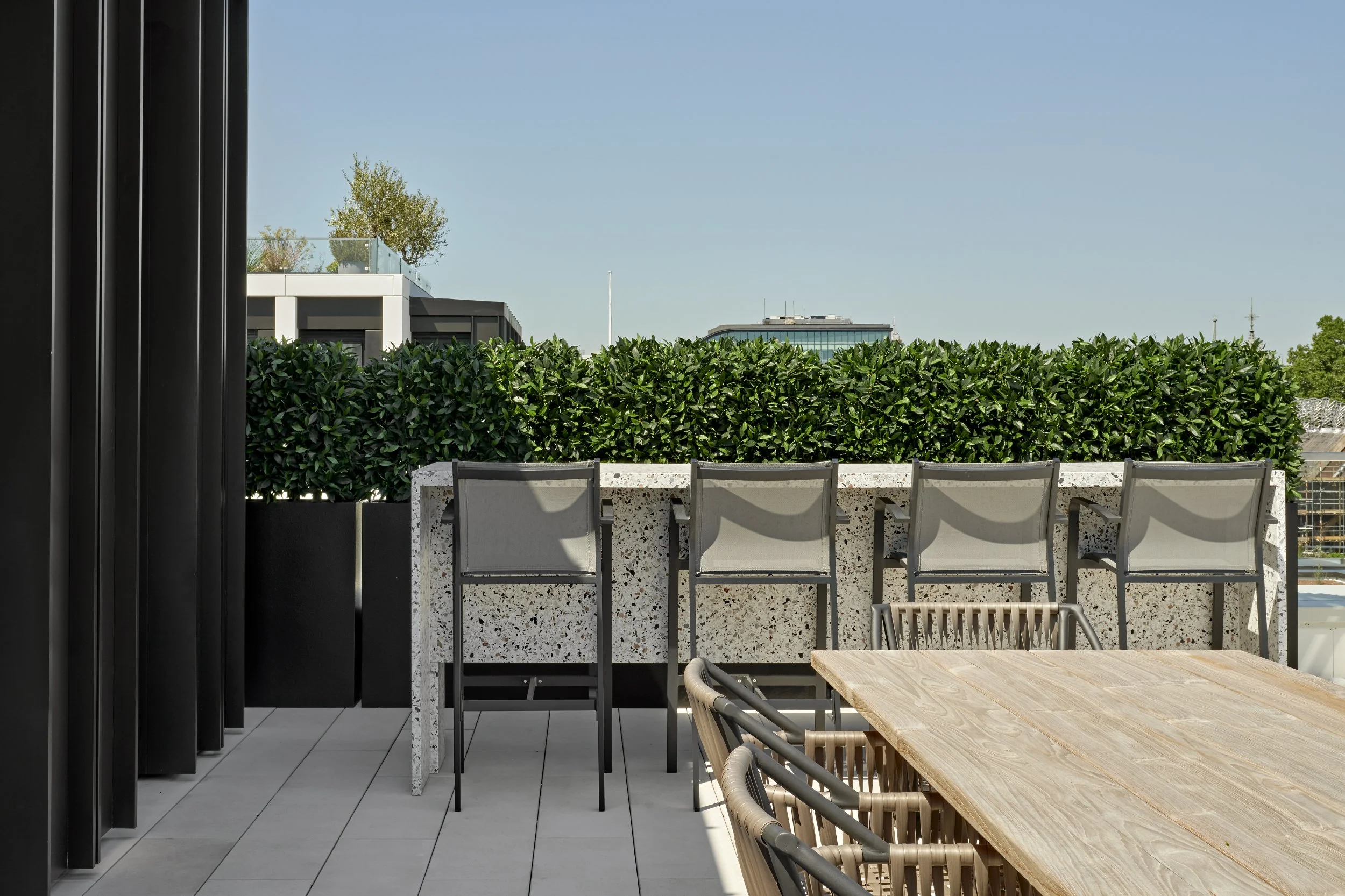 As the nights continue to get shorter and the weather gets warmer, you may find yourself spending more time entertaining outdoors. Therefore, it’s important to design your garden as a natural extension to the home. Take inspiration from our luxury interior design project, Lincoln Square, and choose refined, sophisticated outdoor furniture pieces. Create different zones using your furniture to maximise the space of your garden, offering alternative areas for any occasion. Discover how to recreate the ultimate outdoor entertaining space as showcased on the rooftop terrace of Lincoln Square, here.